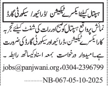 Zainab Panjwani Memorial Hospital jobs advertisement dated about 6 October 2025 in daily Jang Newspaper invites application for the vacant post of security guard, x ray technician and driver in Karachi, karachi Sindh Pakistan. Preferred Education is Intermediate, Matric and Middle etc.