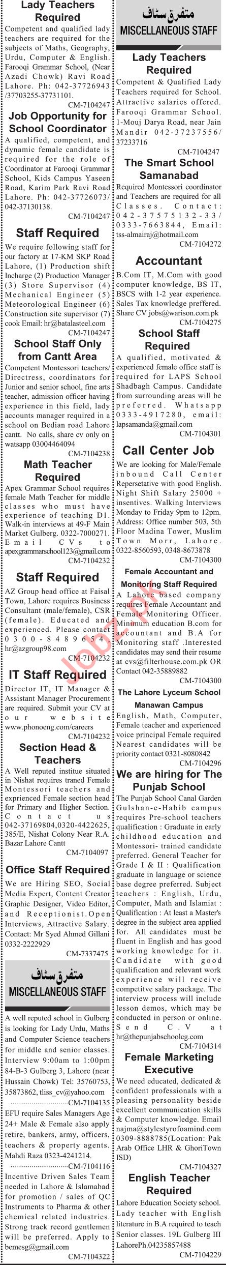 Jang Sunday Classified Ads 5th Sep 2021 For General Staff