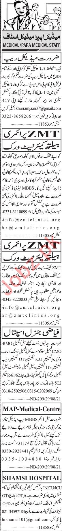 Jang Sunday Classified Ads 5th Sep 2021 For Medical Staff