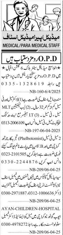 Jang Sunday Classified Ads 6 April 2025 For Hospital Staff