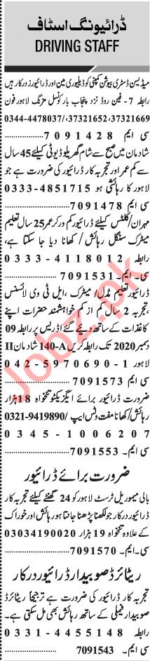 Jang Sunday Classified Ads 6 Dec 2020 For Driving Staff