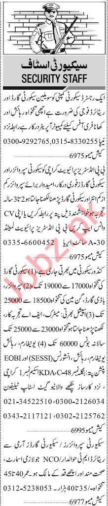 Jang Sunday Classified Ads 6 Dec 2020 For Security Staff