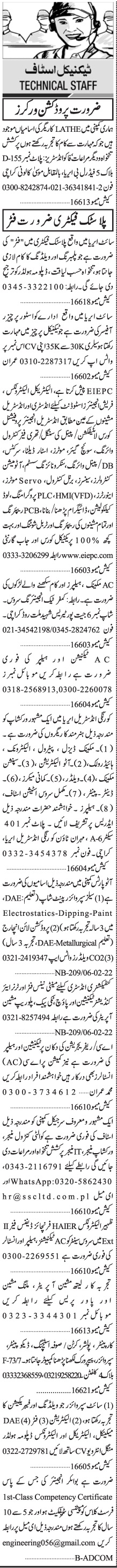 Jang Sunday Classified Ads 6 Feb 2022 For Technical Staff