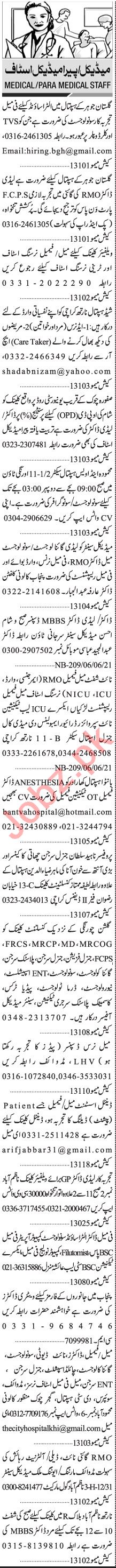 Jang Sunday Classified Ads 6 June 2021 For Medical Staff