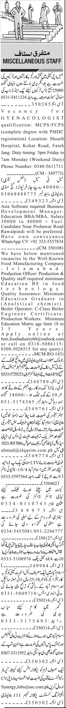 Private Company invites applications for job positions advertised in daily Jang dated 7 March 2022 for following vacancies in Rawalpindi, rawalpindi Punjab Pakistan.