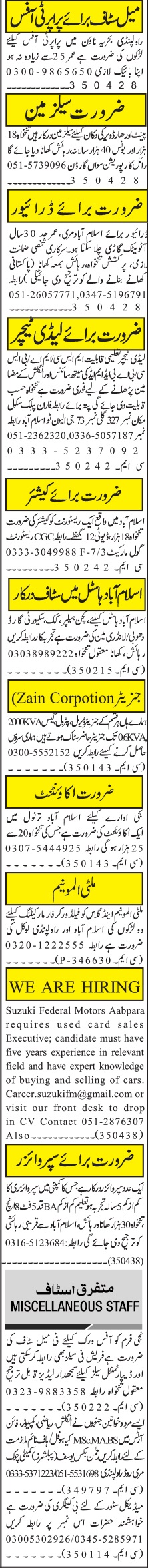 Private Company invites applications for job positions advertised in daily Jang dated 7 March 2022 for following vacancies in Rawalpindi, rawalpindi Punjab Pakistan.