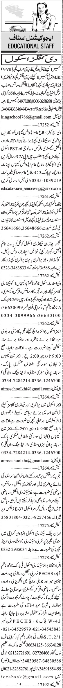 Jang Sunday Classified Ads 6 March 2022 for Teaching Staff
