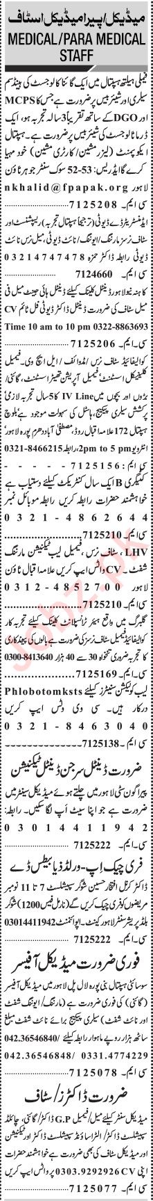Jang Sunday Classified Ads 6 Nov 2022 For Paramedical Staff