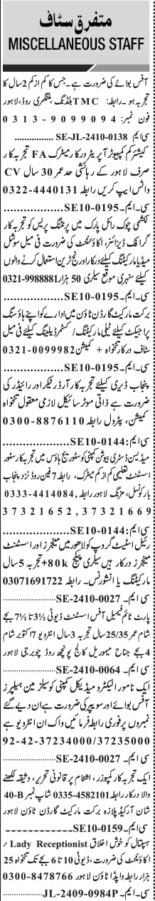 Jang Sunday Classified Ads 6 Oct 2024 For Management Staff