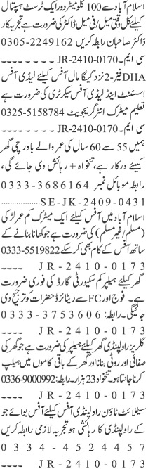 Private Company invites applications for job positions advertised in daily Jang dated 6 October 2024 for following vacancies in Islamabad, rawalpindi Islamabad Pakistan.