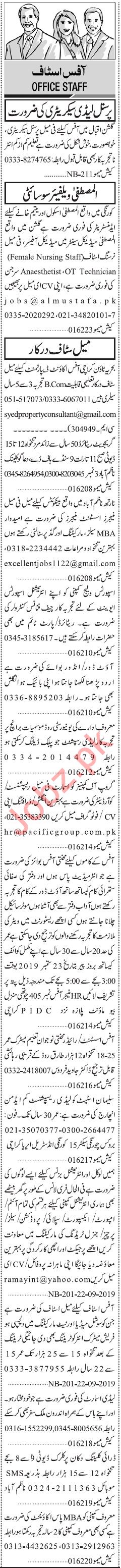 Jang Sunday Classified Ads 6th Oct 2019 for Office Staff