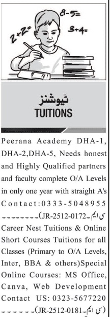 Jang Sunday Classified Ads 7 Dec 2025 For Academy Staff