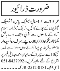 Jang Sunday Classified Ads 7 Dec 2025 for Drivers