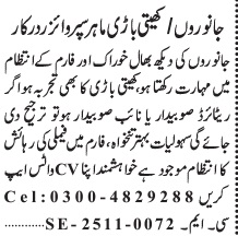 Farm House invites applications for job positions advertised in daily Jang dated 8 December 2025 for following vacancies in Lahore, lahore Punjab Pakistan.