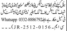 Hotel jobs advertisement dated about 8 December 2025 in daily Jang Newspaper invites application for the vacant post of chef, paintry man, cook, hotel manager, accountant, office boy, waiter, cook helper, manager, receptionist, tax advisor, cleaner, laundry man and sweeper in Islamabad, islamabad Islamabad Pakistan. Candidates with Middle, Primary, BA, Bachelor, Intermediate and Matric etc. educational background will be preferred.