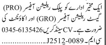 Apply as per details in job advertisement. Login to view further details of how to apply via https://www.jobz.pk online.
