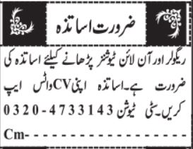 Jang Sunday Classified Ads 7 Dec 2025 for Teaching Staff