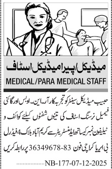 Jang Sunday Classified Ads 7 Dec 2025 Habib Medical Center