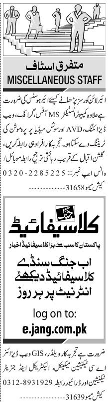 Jang Sunday Classified Ads 7 July 2024 For General Staff