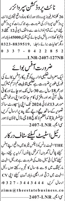 Jang Sunday Classified Ads 7 July 2024 For General Staff
