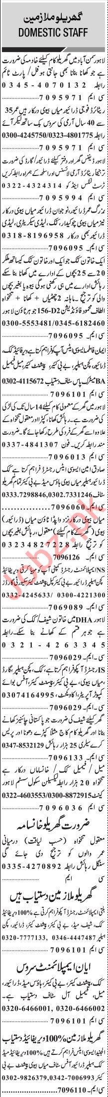 Jang Sunday Classified Ads 7 March 2021 for Domestic Staff