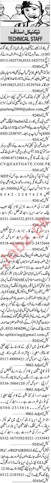 Jang Sunday Classified Ads 7 March 2021 For Technical Staff