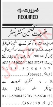 Private Company Islamabad, rawalpindi Islamabad Pakistan invites applications from eligible candidates for the post of pharmacist and canteen contractor as per advertisement of May 8, 2023 published in daily Jang Newspaper. Educational qualifications required B Pharmacy, Matric and Intermediate etc.