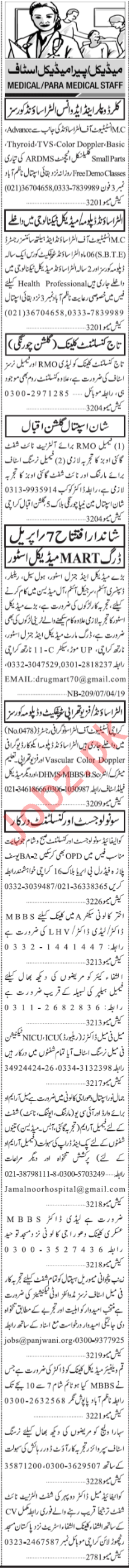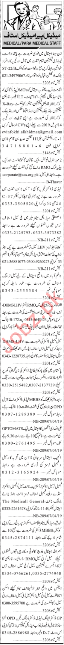 Jang Sunday Classified Ads 7th April 2019 for Medical Staff