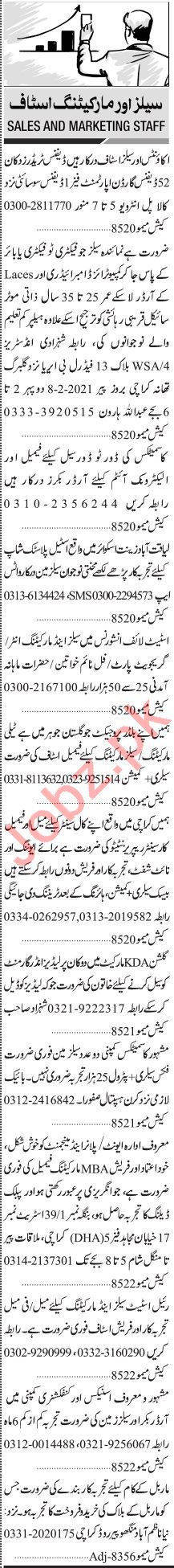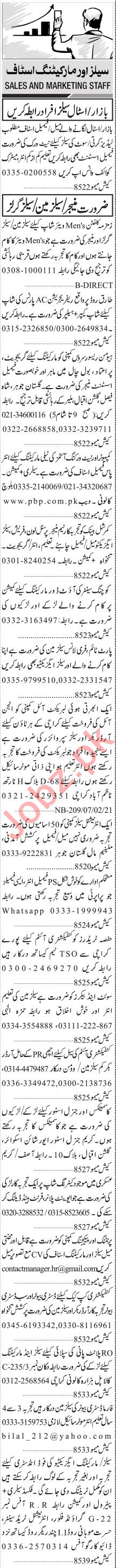 Jang Sunday Classified Ads 7th Feb 2021 For Sales Staff