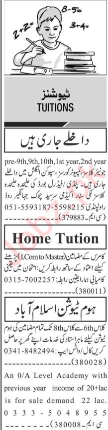 Vacant posts including teacher, o level teacher, english teacher, home tutor and a level teacher are announced in Academy Islamabad, rawalpindi Islamabad Pakistan as per 7 January 2024 advertisement in daily Jang Newspaper. Educational qualifications required Bachelor, MA, Master and M.sc etc.