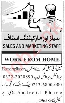 Marketing Company invites applications for job positions advertised in daily Jang dated 7 January 2024 for following vacancies in Karachi, karachi Sindh Pakistan.