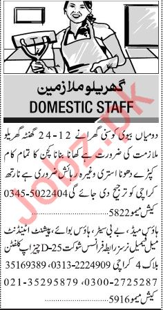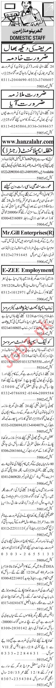 Jang Sunday Classified Ads 7th July 2019 for Domestic Staff