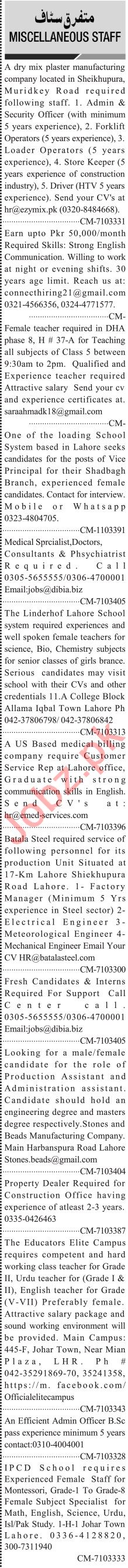Jang Sunday Classified Ads 8 August 2021 For Multiple Staff