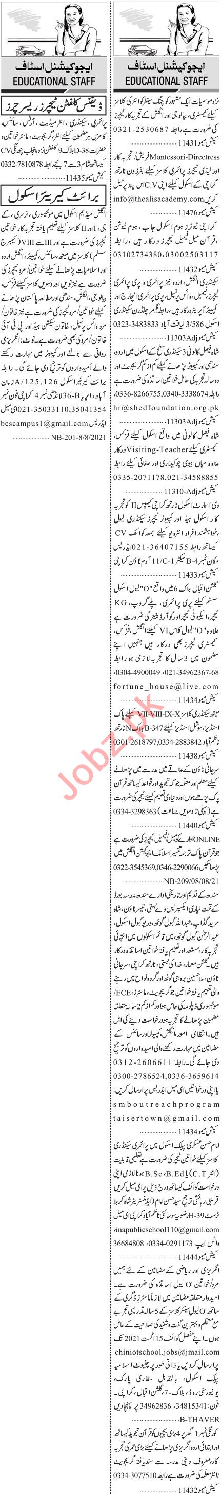Jang Sunday Classified Ads 8 August 2021 For Teaching Staff