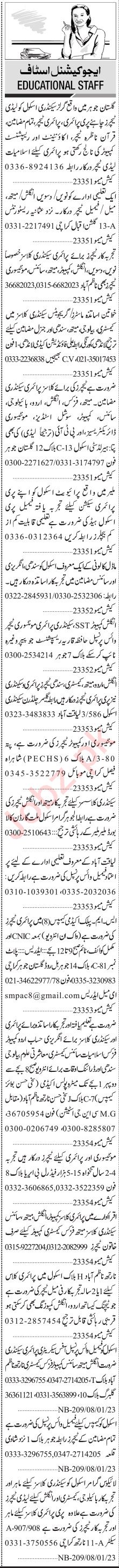 Jang Sunday Classified Ads 8 Jan 2023 for Educational Staff