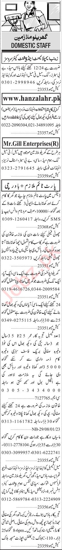 Jang Sunday Classified Ads 8 Jan 2023 For House Staff