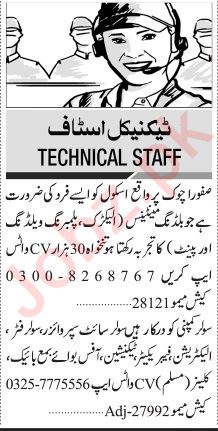 Jang Sunday Classified Ads 8 Oct 2023 For Factory Staff