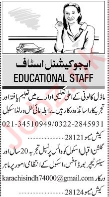 Jang Sunday Classified Ads 8 Oct 2023 For School Staff