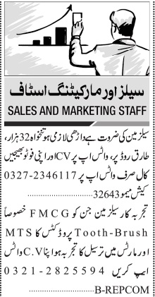 Marketing Company jobs advertisement dated about 9 September 2024 in daily Jang Newspaper invites application for the vacant post of sales staff, salesman and marketing staff in Karachi, karachi Sindh Pakistan. Persons with Matric and Intermediate etc. education can apply.