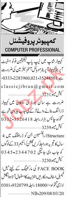Jang Sunday Classified Ads 8th March 2020 For IT Staff