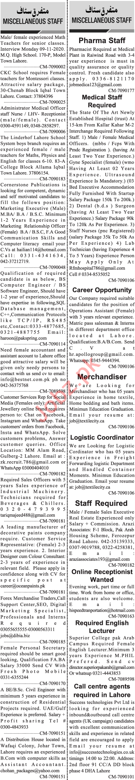 Jang Sunday Classified Ads 8th Nov 2020 For Admin Staff