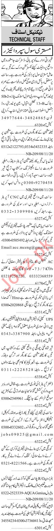 Jang Sunday Classified Ads 8th Nov 2020 For Manufacturing