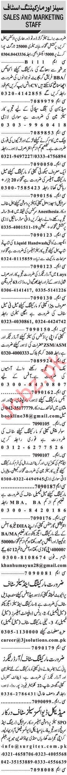 Jang Sunday Classified Ads 8th Nov 2020 For Marketing Staff
