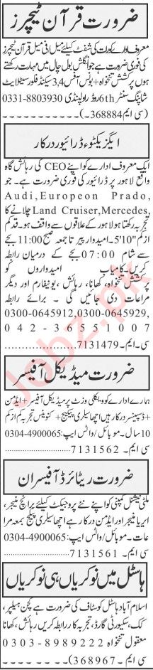 Private Company latest Classifieds Management jobs and others can be applied till 20 May 2023 or as per closing date in newspaper ad. Read complete ad online to know how to apply on latest Private Company job opportunities. Learn today extra skills including Car Driving, Medical, Driving, Cooking / Baking, Administrative Support, Education & Tutoring, Management and Security to get these Private Company jobs. Facilities like accommodation and food may be provided.