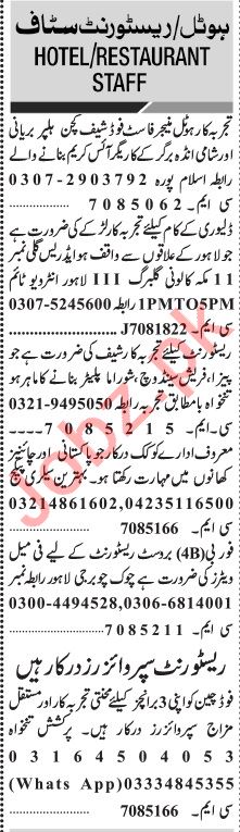 Cashier, Kitchen Helper, Hotel Clerk, Hotel Receptionist, Beverage Manager, Kitchen Manager, Pastry Chef, Restaurant Manager, Sous Chef, Bellman, Baggage Porter, Head Waiter, Dishwasher, Manager, Shift Incharge, Accountant, Barman, Cook, Sweeper, Rider, Delivery Boy, Floor Manager, Receptionist, Clerk, Security Guard, Driver, Office Boy seeks in well developed hotels.