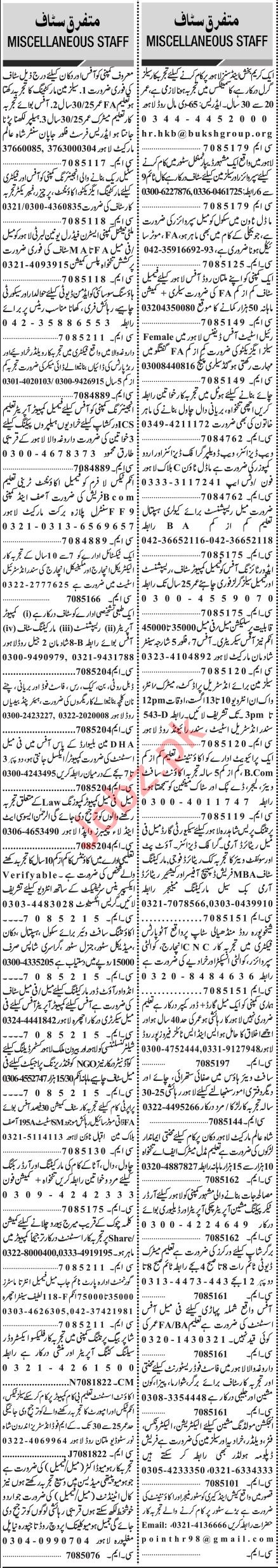 Jang Sunday Classified Ads 9 Aug 2020 For Office Staff