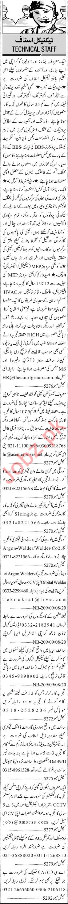 Jang Sunday Classified Ads 9 Aug 2020 For Technical Staff