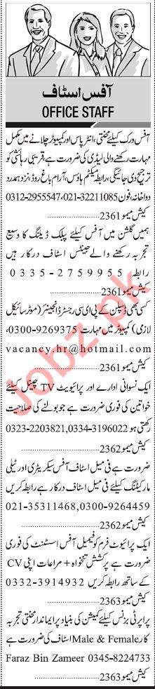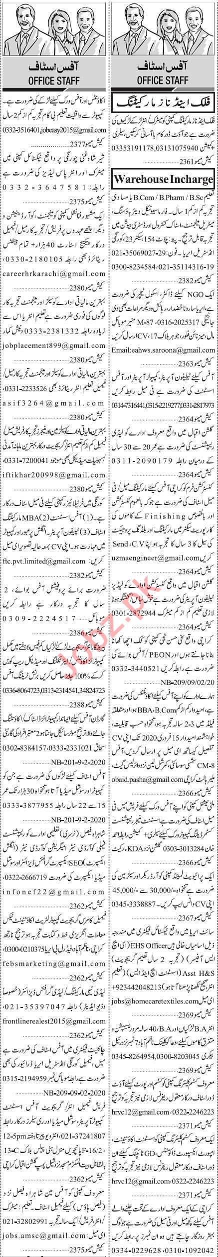 Jang Sunday Classified Ads 9 Feb 2020 for Office Staff