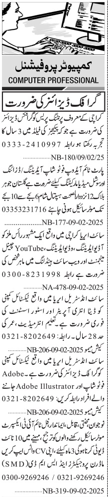 Jang Sunday Classified Ads 9 Feb 2025 for Computer Staff