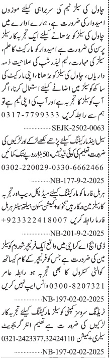 Jang Sunday Classified Ads 9 Feb 2025 For Marketing Staff